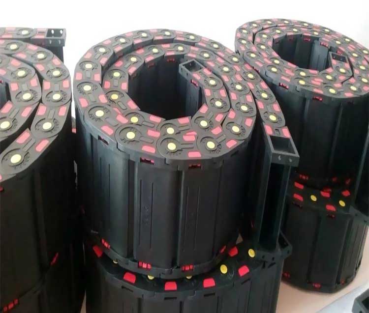 全封閉式工程塑料拖鏈每節都能打開,便于安裝和維修,運動的噪音低、耐磨、可高速運動。耐磨、耐高溫、不變形、低噪音、裝拆靈活、壽命特長。最高速度可達5米/秒,最高加速度可達5米/秒(具體速度、加速度視運行情況而定)。