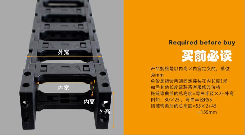 訂貨示例:型號*彎曲半徑*拖鏈寬度*拖鏈長度*數量