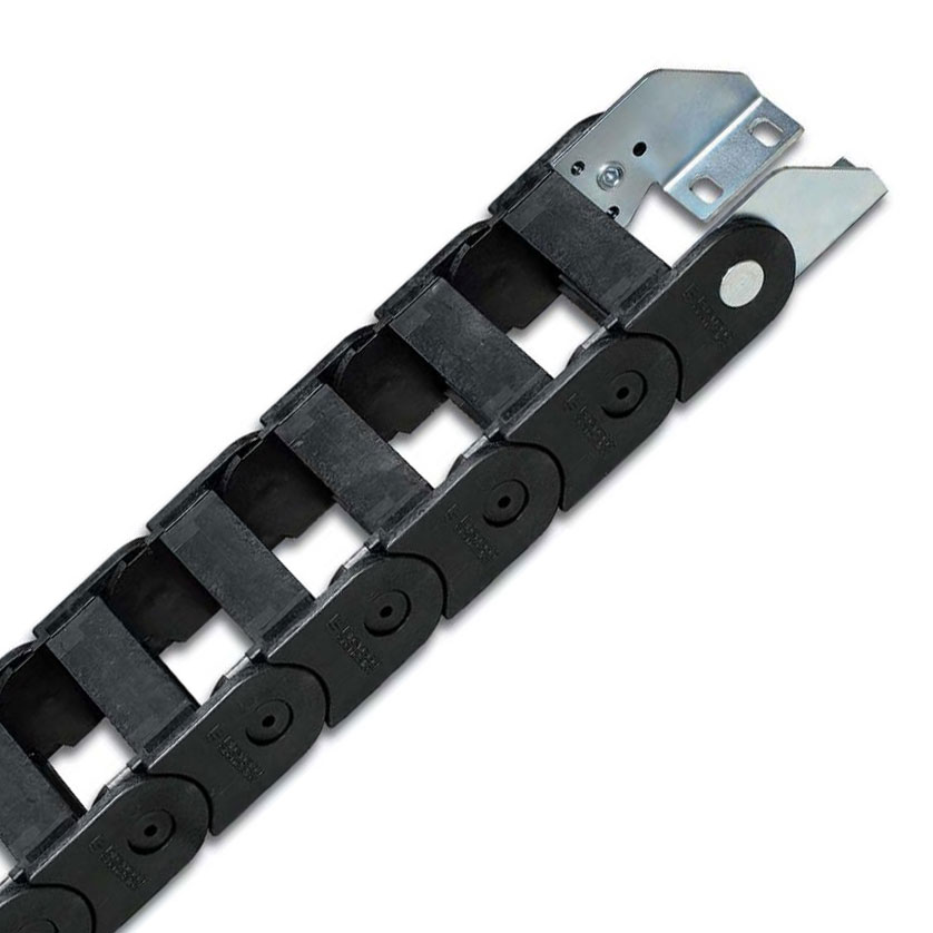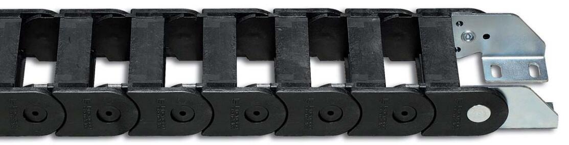 尼龍拖鏈端部連接頭端部連接頭裝置允許拖鏈的兩端都與設(shè)備相連。 端部連接頭的電纜夾和行程中點的限位器可以根據(jù)需要提供。