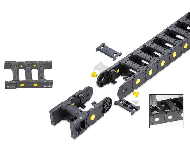 2.可將拖鏈內外側擋片打開,方便檢查或更換電纜;