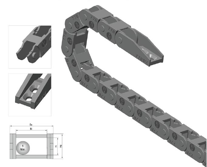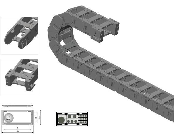 2.拓展塑料拖鏈設計使得拖鏈與拖鏈之間可進行無縫并排鏈接;